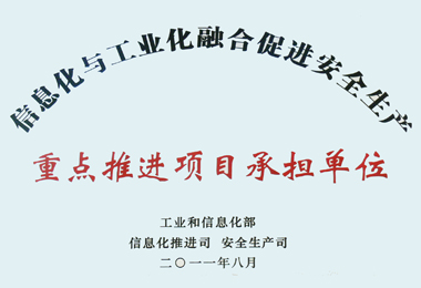 我廠被工信部授予“兩化融合促進(jìn)安全生產(chǎn)重點推進(jìn)項目承擔(dān)單位”稱號