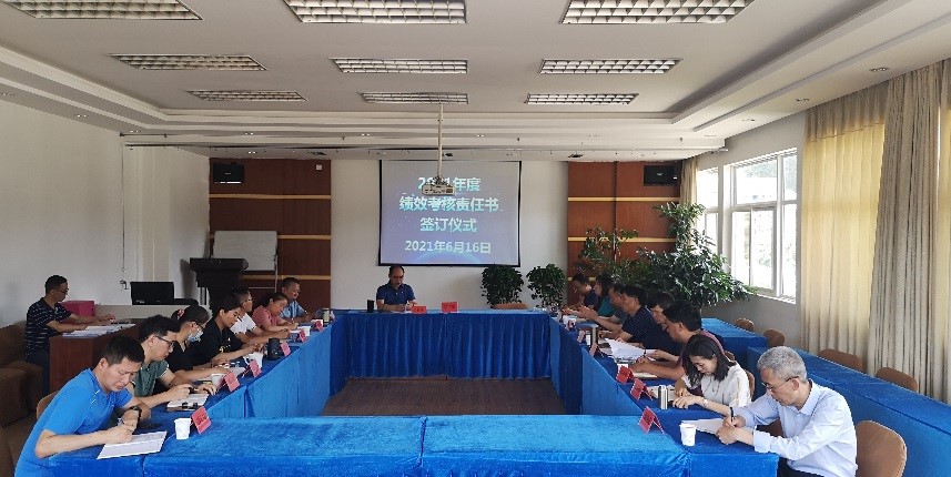 2021年6月16日,公司召開2021年度公司績效考核責任書簽訂會,公司領(lǐng)導、副總工程師、四個分公司經(jīng)理、總部各部門負責人、績效考核小組成員參加簽訂會,旭潤公司總經(jīng)理列席簽訂會。公司副總經(jīng)理潘彥吉主持簽訂會。