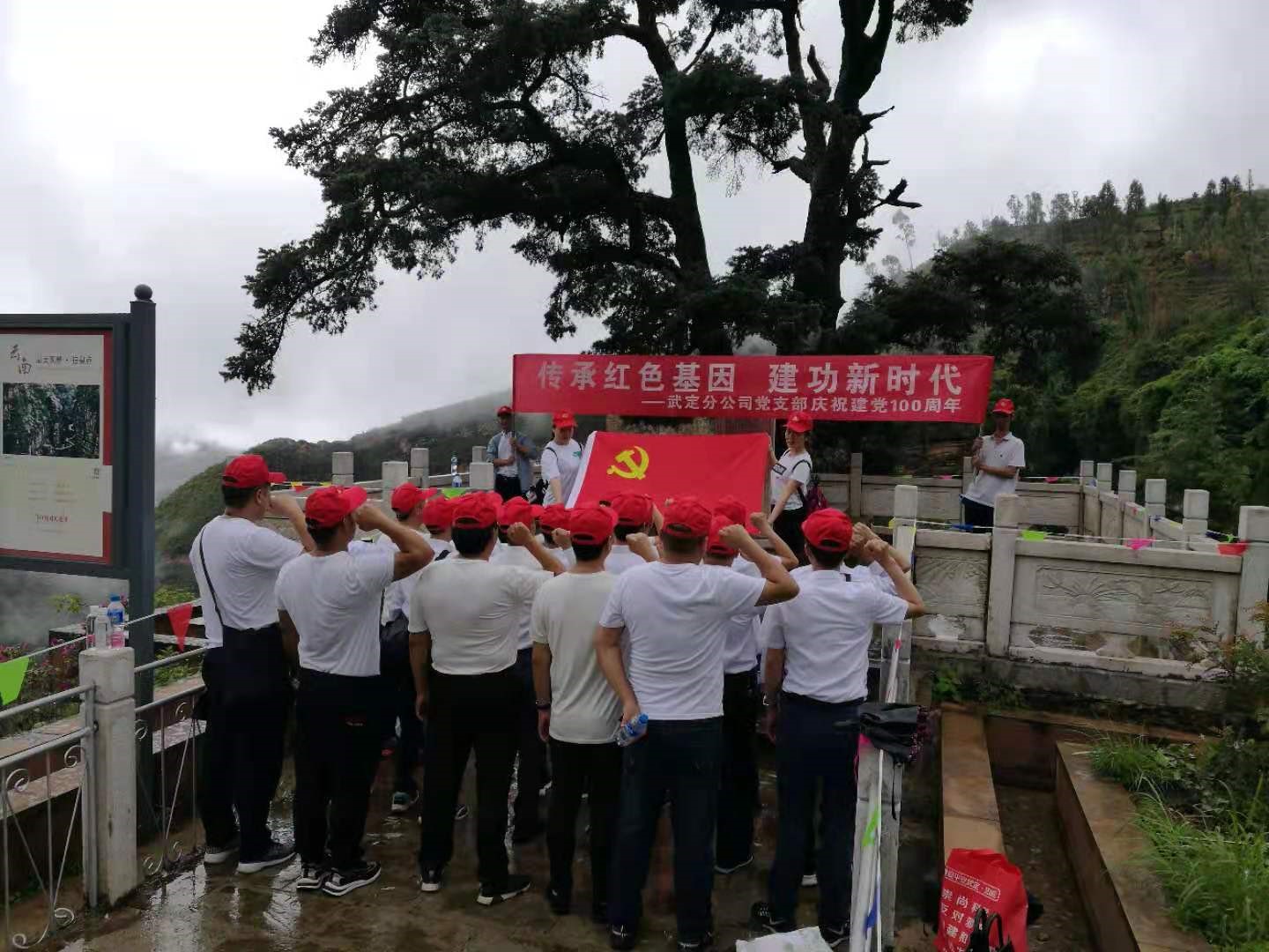 為慶祝中國(guó)共產(chǎn)黨成立100周年,增強(qiáng)分公司廣大黨員的光榮感、使命感和干事創(chuàng)業(yè)熱情,充分發(fā)揮崗位先鋒作用,推進(jìn)公司健康發(fā)展,武定分公司黨支部于2021年6月28日組織分公司黨員到已衣大裂谷“紅軍樹(shù)”紅色教育基地開(kāi)展“傳承紅色基因、建功新時(shí)代”主題黨日活動(dòng)。