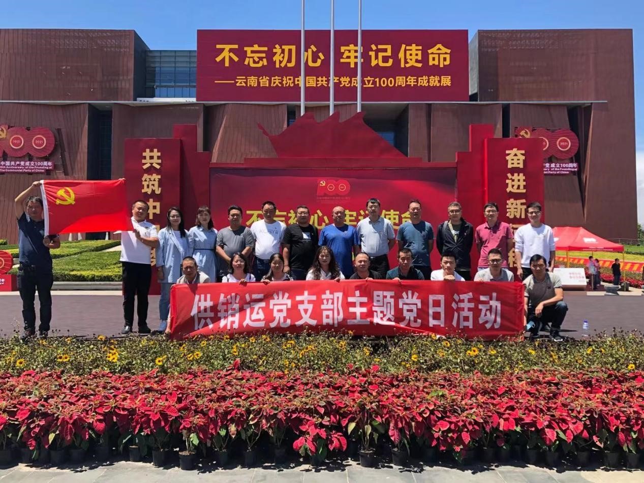 為深入學(xué)習(xí)貫徹習(xí)近平總書記“七一”重要講話精神、推進(jìn)黨史學(xué)習(xí)教育。供銷運(yùn)黨支部于2021年8月20日下午開展“慶祝中國共產(chǎn)黨成立100周年七一主題黨日活動”,前往云南省博物館參觀“不忘初心、牢記使命——云南省慶祝中國共產(chǎn)黨成立100周年成就展”,感悟黨的百年奮斗歷程,汲取繼續(xù)前進(jìn)的智慧和力量。