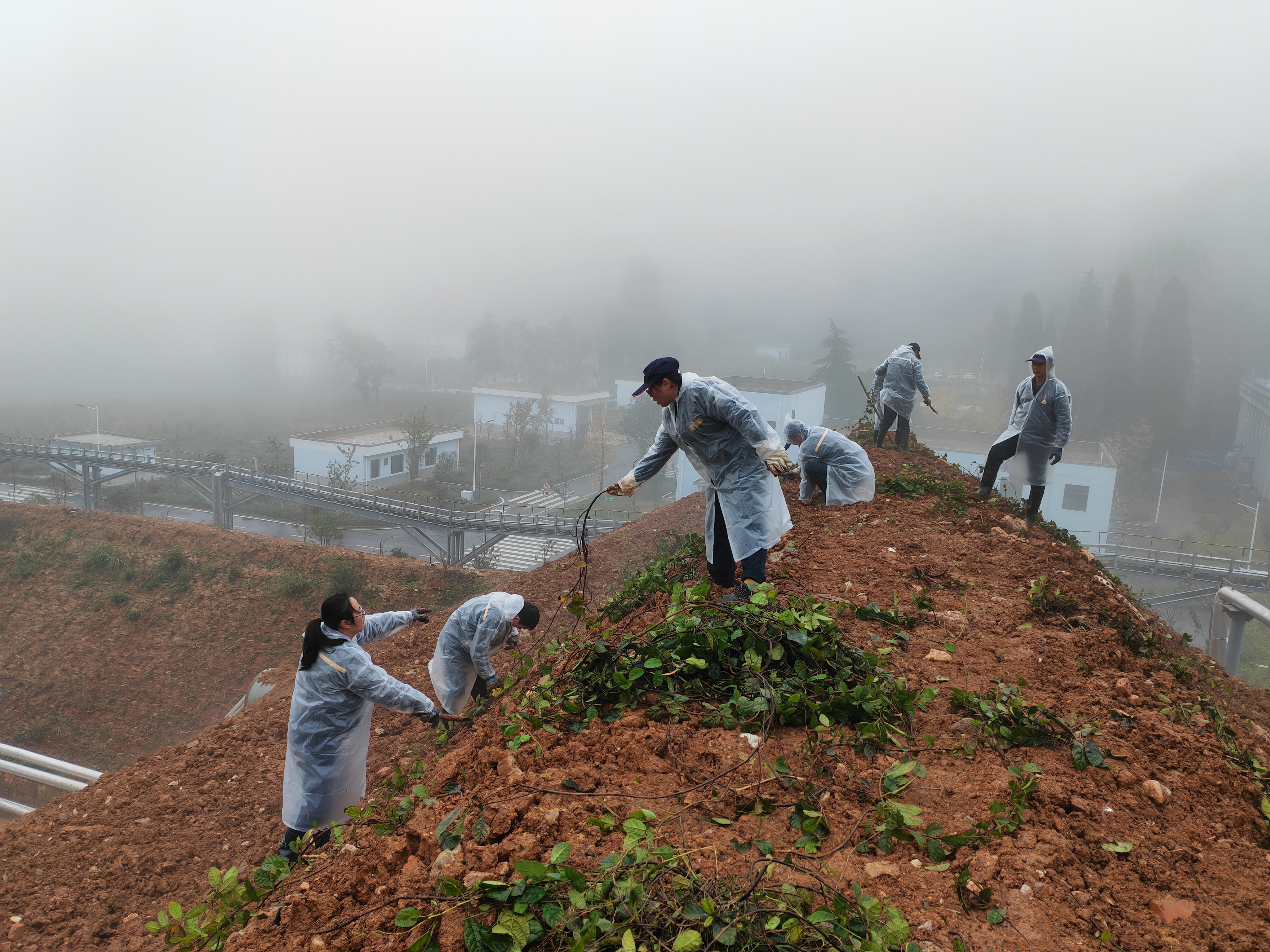 活動(dòng)當(dāng)天是二十四節(jié)氣中的“霜降”,大凹塘氣溫再降,陰雨綿綿,黨員同志們積極響應(yīng)黨支部號(hào)召,如約而至。經(jīng)過(guò)簡(jiǎn)單分工,有的黨員負(fù)責(zé)到老生產(chǎn)線挖地石榴藤,并搬運(yùn)藤到新生產(chǎn)線,有的手持鐮刀挖坑栽種,大家分工協(xié)作、現(xiàn)場(chǎng)一片熱火朝天的景象。活動(dòng)中大家的鞋子和褲腿沾滿(mǎn)泥土,臉上分不清是雨水還是汗珠,但依然擋不住大家對(duì)植綠護(hù)堤的熱情,各個(gè)精神飽滿(mǎn)、干勁十足,充分發(fā)揮黨員的模范帶頭作用。經(jīng)過(guò)同志們一個(gè)上午的共同努力,光禿禿的土堤上點(diǎn)綴上了點(diǎn)點(diǎn)綠色。