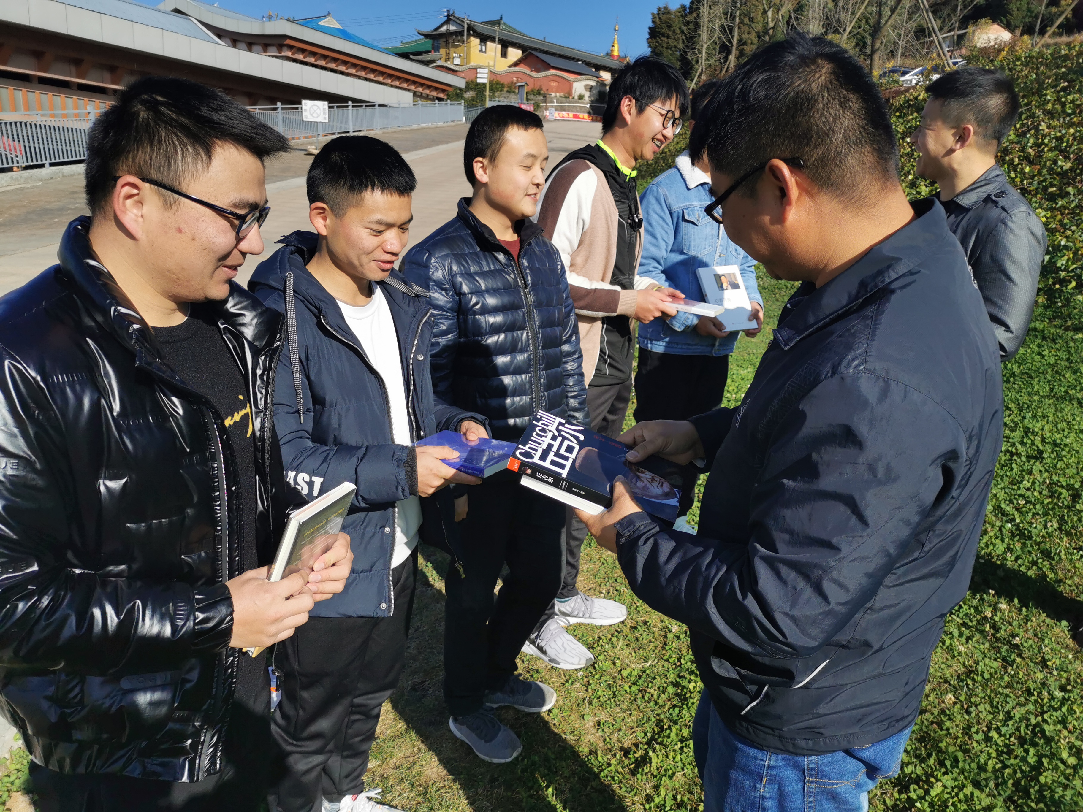 團員青年圍坐在草坪上,分享紅色故事《中央紅軍的第一支騎兵連》和先進典型“白貴云”的故事,并在信封上寫上了2022年的奮斗目標(biāo),以此來激勵自己。隨后,青年委員楊海賓和副總經(jīng)理葉建為團員青年贈書,并送上新年祝福。