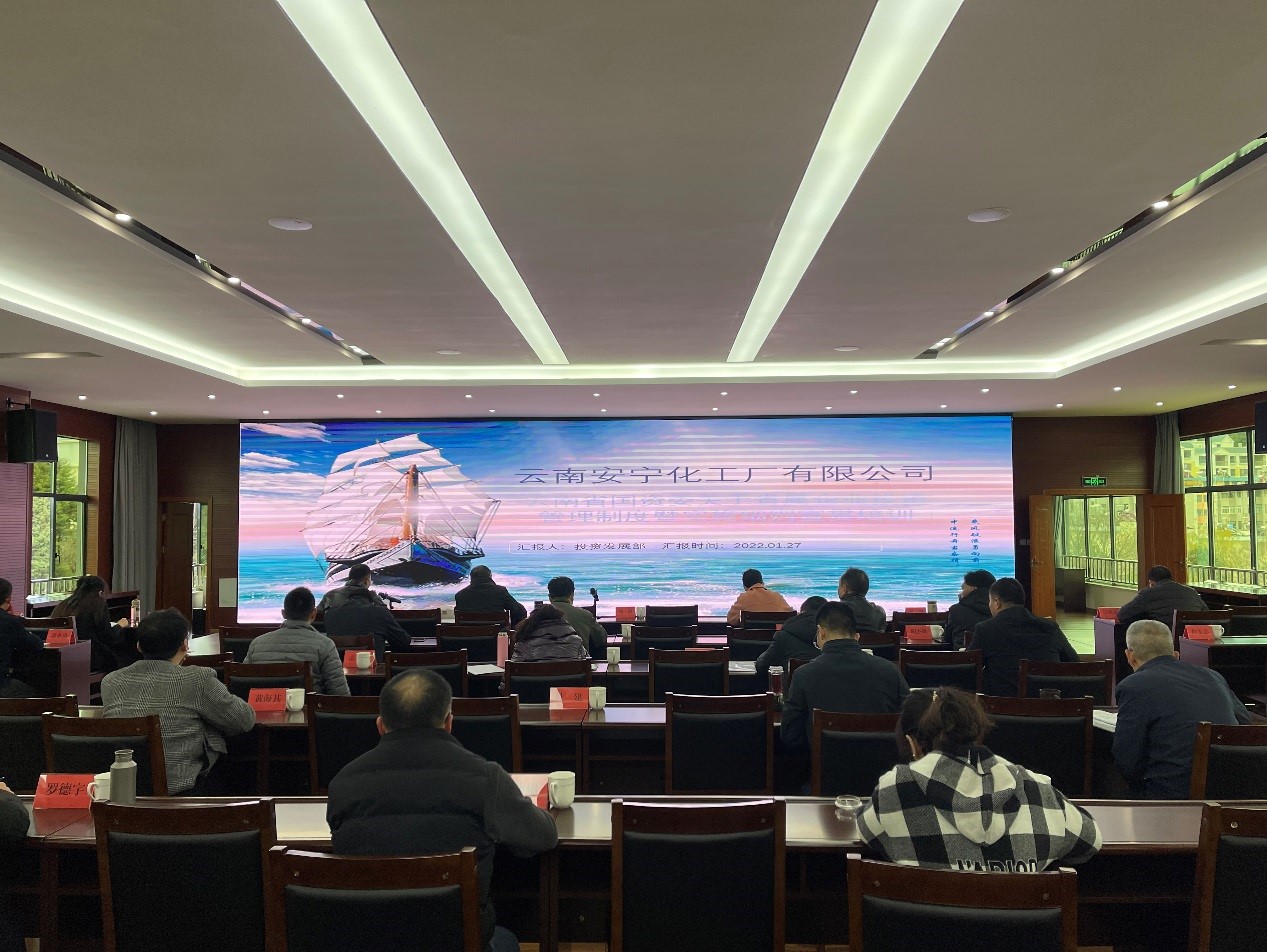 新征程,新氣象,共繪新安化!為深入貫徹落實(shí)黨中央、國務(wù)院及省委、省政府關(guān)于深化國資國企改革各項(xiàng)措施,優(yōu)化國資國企監(jiān)管體制,進(jìn)一步加強(qiáng)公司投資監(jiān)督管理,2022年1月27日,由投資發(fā)展部牽頭,組織總部各職能部門、公司所屬獨(dú)資、控股子公司、分公司相關(guān)負(fù)責(zé)人召開《云南省省屬企業(yè)投資監(jiān)督管理暫行辦法》《云南省省屬企業(yè)投資監(jiān)督管理暫行辦法實(shí)施細(xì)則》《云南省省屬企業(yè)投資項(xiàng)目項(xiàng)目負(fù)面清單(暫行)》宣貫會(huì)議。公司副總經(jīng)理潘彥吉主持會(huì)議。