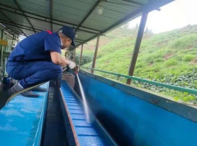 為保證設(shè)備正常運(yùn)行,端午節(jié)期間,金沙人化工炸藥生產(chǎn)車間部分黨員、職工們主動(dòng)放棄假期,利用停產(chǎn)時(shí)間,對(duì)生產(chǎn)區(qū)各類設(shè)備進(jìn)行維護(hù)保養(yǎng)、藥卷冷卻鏈板及水池進(jìn)行徹底清洗。盡管加班期間突遇雷雨天氣,每個(gè)人被房檐濺落的雨水打濕了衣服,但他們?nèi)匀缓翢o怨言,仔細(xì)清理,不折不扣地完成了清洗保養(yǎng)工作。