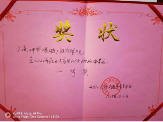 【榮譽(yù)】神斧爆破公司被開遠(yuǎn)市交通安全委員會(huì)評為2022年度開遠(yuǎn)客貨運(yùn)輸企業(yè)道路交通安全管理工作一等獎(jiǎng)