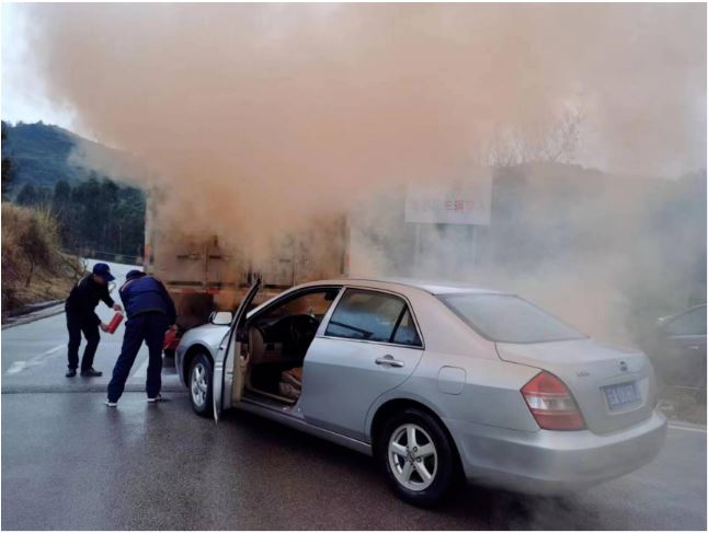 本次演練是模擬公司危貨運(yùn)輸車裝載成品后由安寧分公司后門駛出,一輛小轎車因右轉(zhuǎn)時(shí)車速過(guò)快,小轎車車頭追尾危貨運(yùn)輸車后貨廂尾部,導(dǎo)致小轎車車頭起火。駕駛員及押運(yùn)員在第一時(shí)間迅速向公司報(bào)告并報(bào)警,立即處置初起火災(zāi)。公司接到事故報(bào)告后立即對(duì)事故進(jìn)行分析研判后果斷決定組織應(yīng)急隊(duì)伍到現(xiàn)場(chǎng)開展應(yīng)急救援處置。經(jīng)過(guò)現(xiàn)場(chǎng)人員全力有序配合,迅速把初起火災(zāi)撲滅,未造成人員傷亡和過(guò)大的財(cái)產(chǎn)損失。演練過(guò)程按照應(yīng)急演練方案進(jìn)行,組織有力、分工明確、處置得當(dāng),達(dá)到預(yù)期效果。