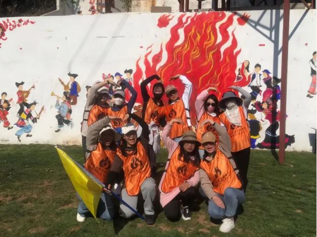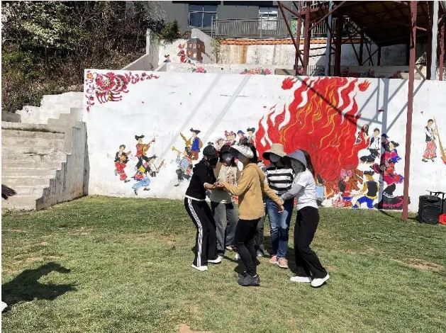 女職工們來(lái)到美麗的豹子箐,在教官的帶領(lǐng)下首先進(jìn)行合影留念、破冰行動(dòng)、熱身舞蹈。